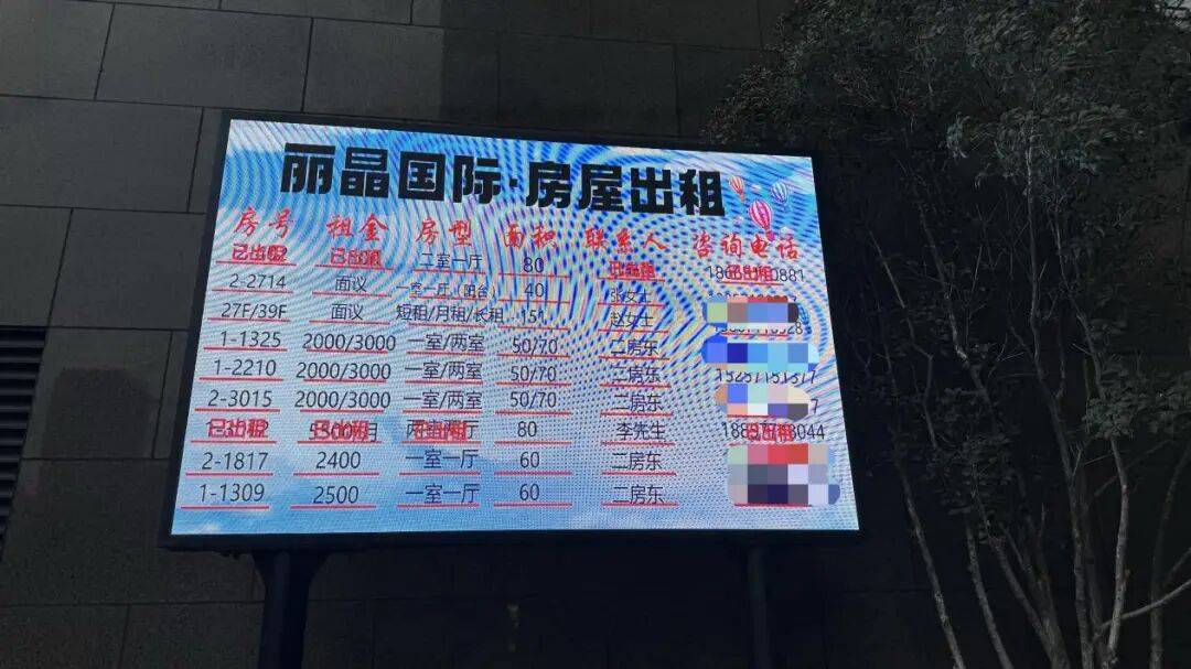 现在,丽晶国际门口LED大屏上滚动的租房信息里,从28平方米的小户型到200平方米的大户型一应俱全,大多标注着“面议”,少了当年的抢手劲儿。贝壳App上,近百套空置的房源在静静等待归处。