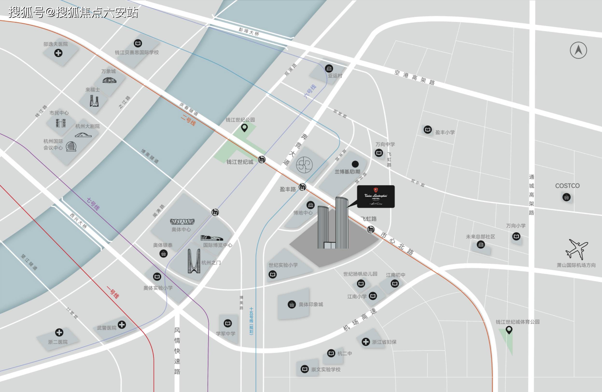 瑰郦中心占据钱江世纪城核心区位,地处市心北路与利丰路交汇处,隶属于杭州“拥江发展”战略核心板块,与奥体“莲花碗”场馆群对望,南揽钱江新城“日月同辉”景观,北接西湖景区,形成“四区交汇”的战略高地,承载着城市能级跃升的核心使命。