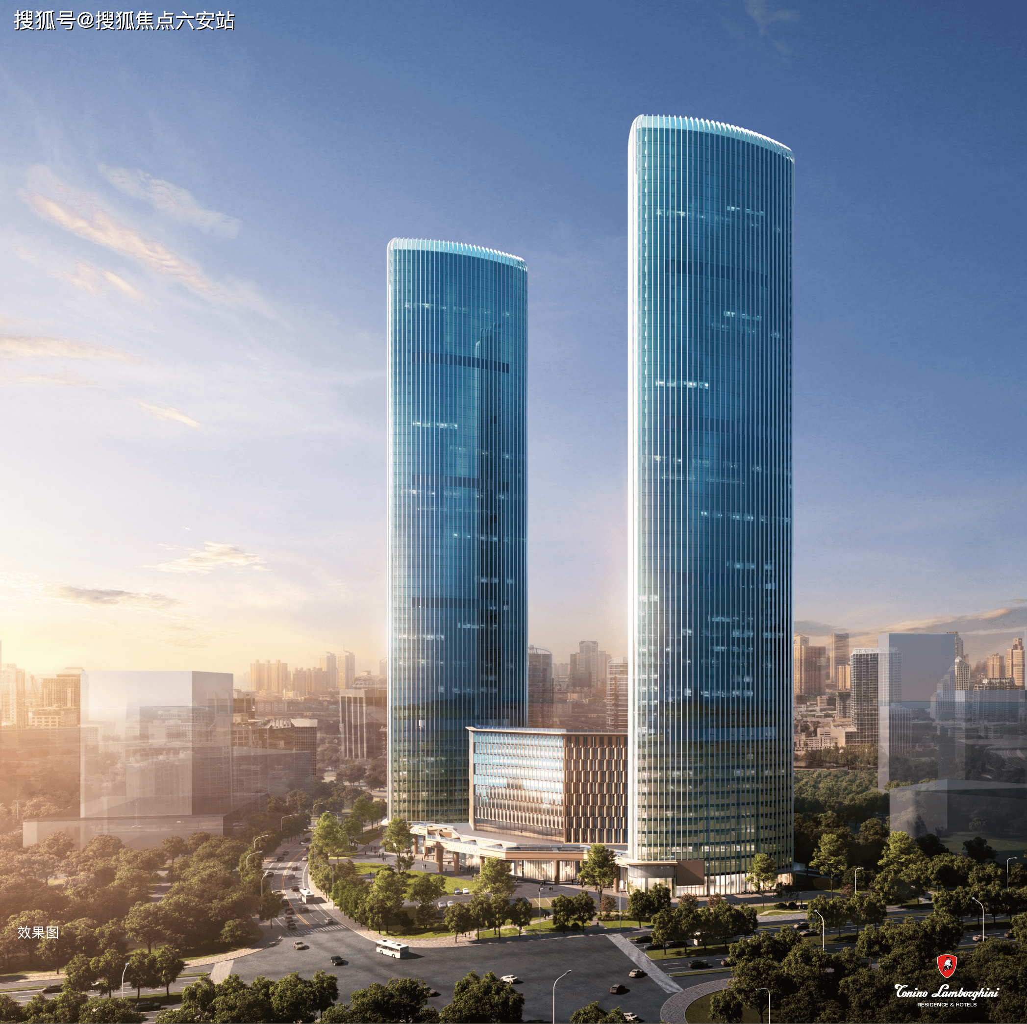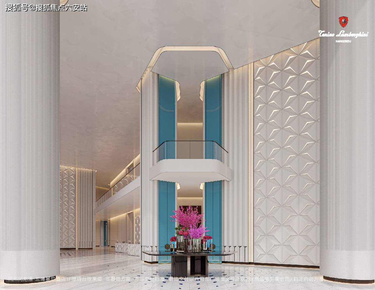 其一,品牌与设计优势突出。项目由浙江新世界集团与兰博基尼联合开发,SWS GROUP、CCD、SLD三大国际设计团队操刀,建筑立面复刻兰博基尼超跑流体美学,以钻石棱线与流线型光影切割,搭配意大利卡拉拉白大理石外立面,呈现速度与美学的完美融合,公区装修对标深圳湾壹号,打造艺术馆级空间质感。
