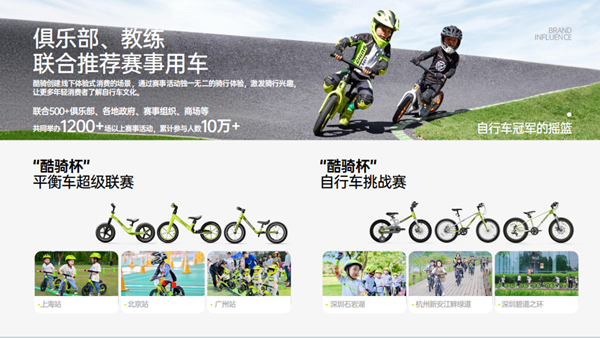2024年(1000+场,多类型合作方),实现了指数级增长。2025年,具备基础设施属性的全民骑行生态平台。合作方从俱乐部扩展到政府、协会、商场、社区,表明酷骑赛事已从“品牌自有活动”升级为被各方认可的公共文化体育项目。这意味着酷骑正在构建骑行运动的行业生态平台。
