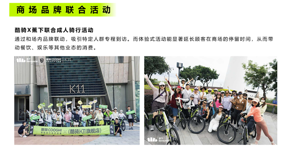 社区与商业体深度链接:通过与商场、社区的合作,举办公益骑行、嘉年华等活动,有效为合作方提升客流、激活场地,扮演“本地生活内容运营商”角色。