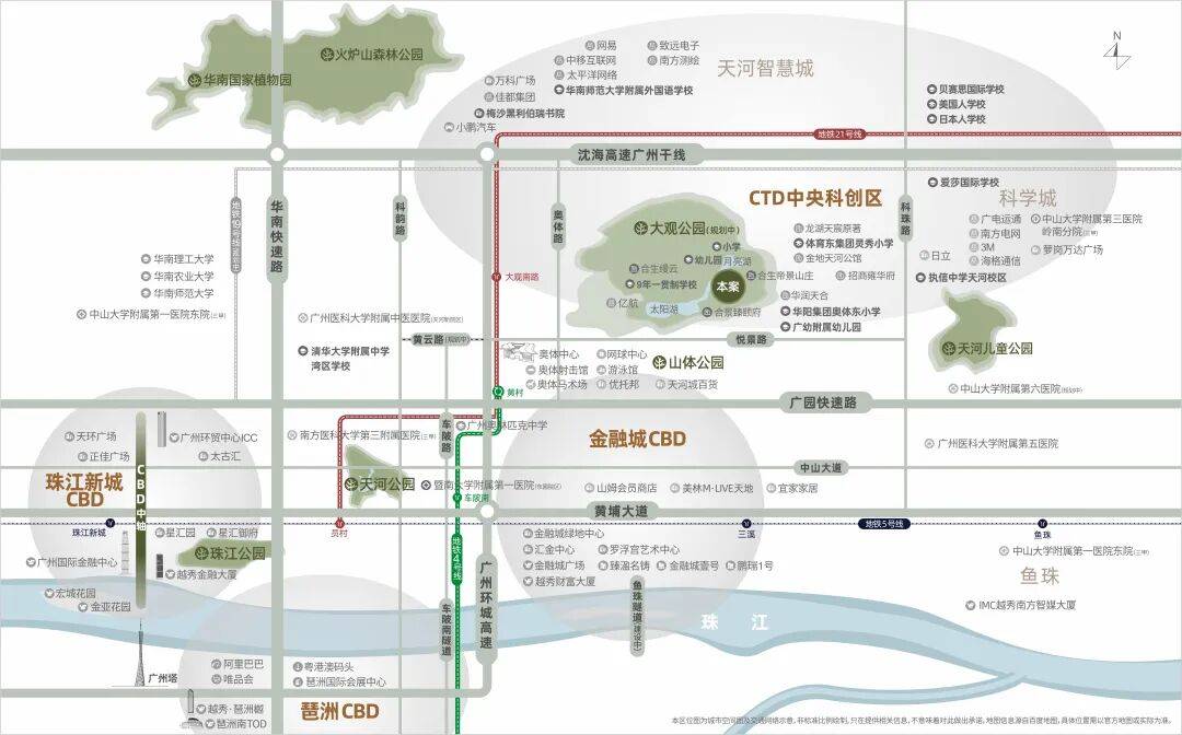 项目坐拥世界大观板块约243万㎡原生山林和5.3万㎡日月双湖,负氧离子浓度超珠江新城44倍、白云山11倍,生态基底优越。距地铁21号线号线号线号线可快速抵达金融城和琶洲。项目内部设有公交总站直达地铁站,奥体路已通车,悦景路待开通,自驾出行便捷。