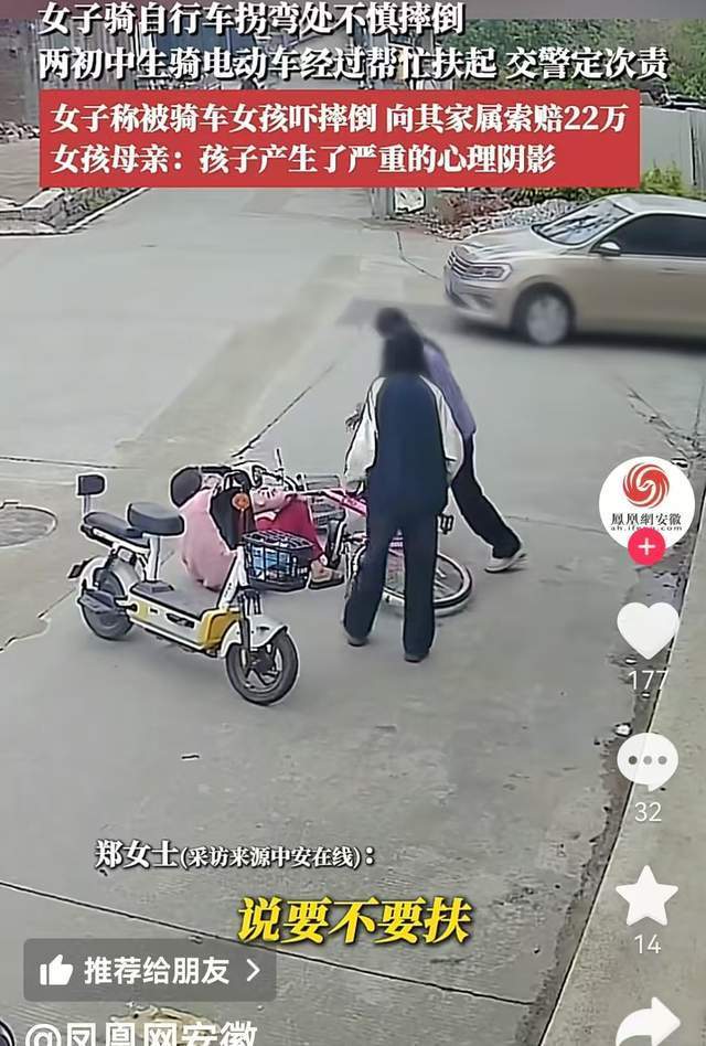 老人起身之后,一口咬定是这两个女生骑着电动车突然从路口窜出,把自己吓到了才摔倒的,当场要求孩子的家长到现场处理。女生家长赶到后,反复解释孩子只是好心帮忙,并非事故责任人,可老人一方根本不听,双方各执一词,最终只能报警解决。更让家长没想到的是,交警查看监控后,判定这是一起 “无接触事故”,两名未满 16 岁的女生需要承担次要责任。