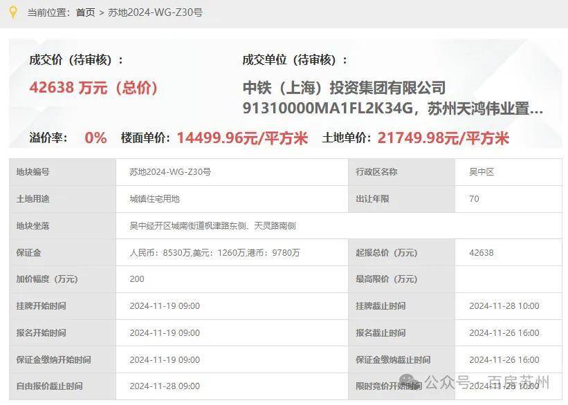 【项目速览】位于吴中经开区城南,由央企中铁联合本地国企天鸿伟业打造,楼面价约14500元/㎡,相比周边地块有显著成本优势。项目容积率仅1.5,限高40米,规划了3栋4层叠墅和5栋10-11层洋房,纯低密社区