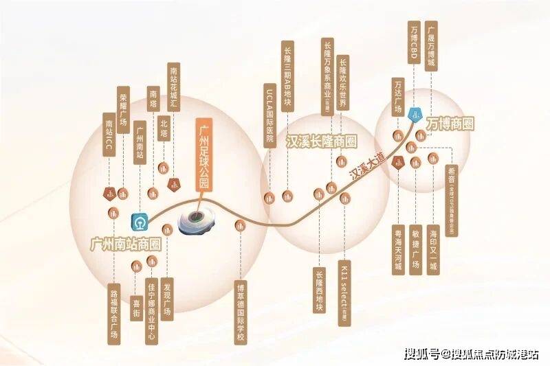 商业配套方面,广州南站板块正在加速完善,除了广州城投广州足球公园自带的1.4万㎡滨河风情商业街,周边还有多个大型商业综合体正在规划建设中,未来将引入更多优质的商业资源,打造“15分钟生活圈”,满足居民的日常消费和休闲娱乐需求。同时,板块内的教育、医疗配套也在持续升级,多个学校、医院正在规划建设中,进一步提升板块的居住舒适度。