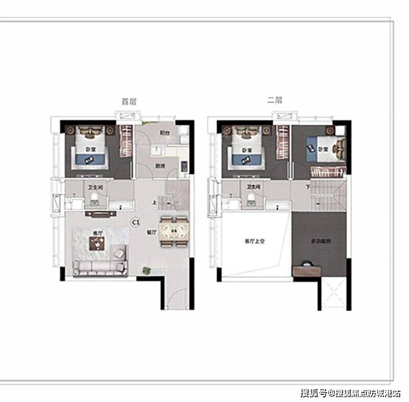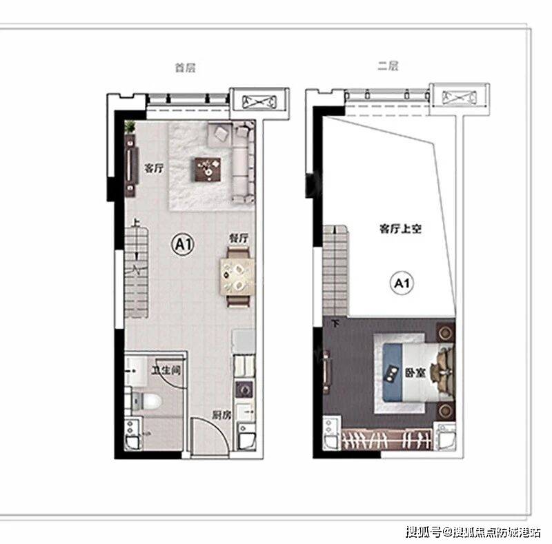 如果你喜欢阁楼的设计,追求空间的层次感和实用性,那么49.7㎡的阁楼户型一定不要错过。这个户型最大的亮点就是层高4.5米,可以轻松隔成两层,实现“买一层得两层”的快乐,得房率直接拉满。楼下可以规划成客餐厅和厨房,平时做饭、待客,空间宽敞又舒适;楼上可以当成卧室,私密性超强,晚上休息不会被打扰。很多买了这个户型的业主都说,朋友来做客的时候,都夸这个户型实用又有格调,性价比远超周边的平层公寓。