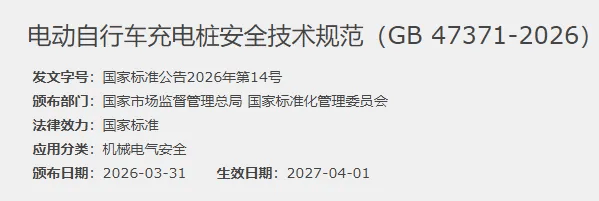 西湖娱乐城,西湖娱乐城官方网站,西湖娱乐城APP,西湖娱乐城网址,西湖娱乐城注册近日,电动自行车充电桩领域强制性国家标准《电动自行车充电桩安全技术规范》(GB 47371-2026),已正式发布。截至目前,新政落地已半月有余,为期1年的过渡期稳步推进中,距离2027年4月1日全面实施进入倒计时,行业规范化变革正式拉开帷幕,这意味着电动自行车充电桩领域,已进入行业有序发展阶段。